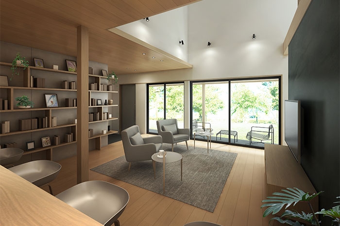 親しい人たちを招いてお茶会や食事会など、さまざまなシーンに対応可能なクラシカルなスタイルの家です。テラスによって室内外がゆるやかにつながり、アイデア次第で色々な楽しみ方が可能に。開放的な空間はコミュニティの中心になることが期待できます。